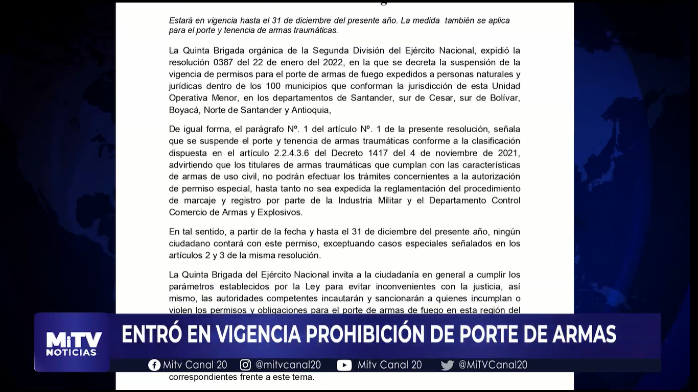 EN VIGENCIA PROHIBICIÓN DE ARMAS